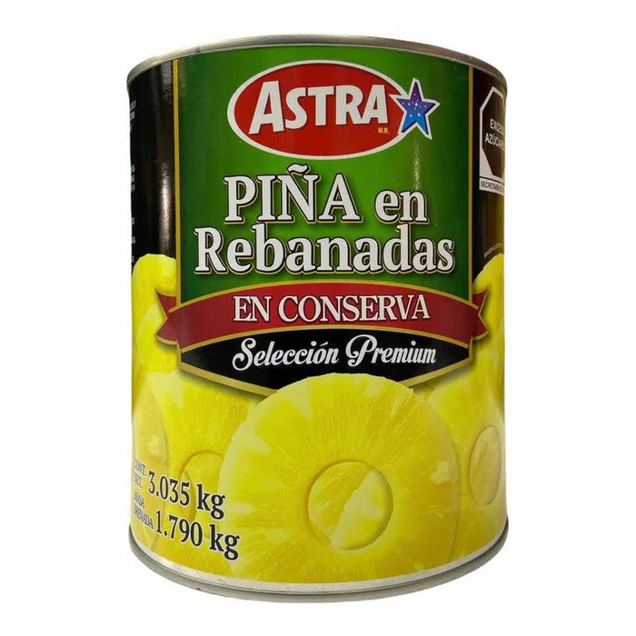 La Piña en Rebanadas Astra de 3 Kg es un producto de alta calidad, ideal para realzar el sabor de tus postres, bebidas y decoraciones. Este producto viene en un formato de rebanadas, lo que facilita su uso y manipulación. La piña se encuentra en un delicioso almíbar, que conserva su frescura y sabor. La marca Astra se distingue por su compromiso con la calidad y el sabor de sus productos.